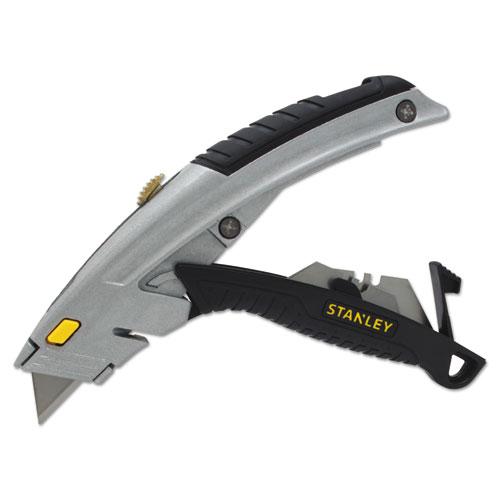 Stanley InstantChange Retractable Knife - 3 Stainless Steel Blade - 1" Height x 3" Width x 6.5" Length - Retractable, Durable, Heavy Duty - Cast Metal - Black, Chrome - 1 Each