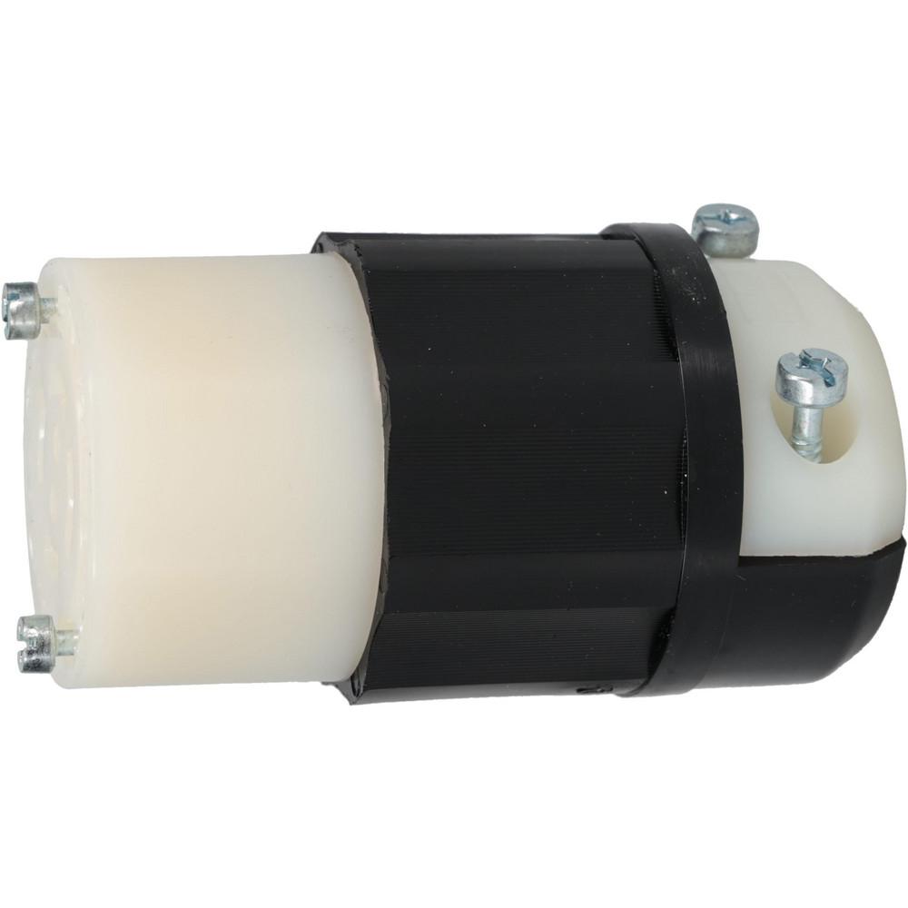 Locking Inlet: Connector, Industrial, L16-20R, 480V, Black & White 480 VAC 20A NEMA L16-20R Industrial Twist Lock Connector 3 Poles, 4 Wires, 3 Phase, Self-Grounding, 0.595 to 0.895" Cord Diam, Black/White
