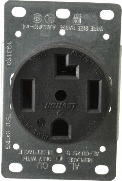 Straight Blade Single Receptacle: NEMA 14-30R, 30 Amps, Self-Grounding Industrial, Black
