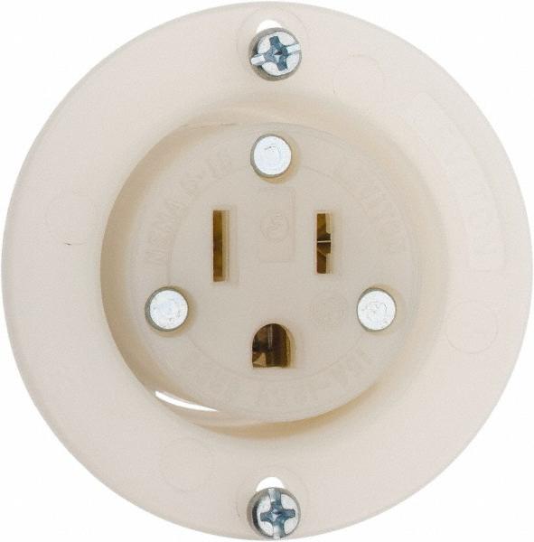 Straight Blade Single Receptacle: NEMA 5-15R, 15 Amps, Self-Grounding Industrial, White