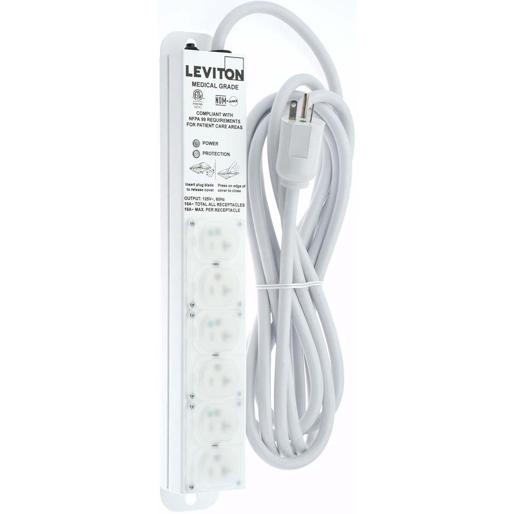 Surge Protected Outlet Strip, Total Number of Outlets 6, Cord Length 15 ft, Rated Joules 644, Application Hospital and Medical Facility, Housing Material Steel, Max. Amps 20 A, Power Indicator Yes, Receptacle Configuration Hospital Grade, Plug Configuration NEMA 5-20P, Medical Facility Use Patient Care - Only When Permanently Mounted (UL 1363A); Outside Patient Care Areas (UL 1449); Patient Care (UL 60601-1), Voltage 125V AC, Length 16 7/8 in
