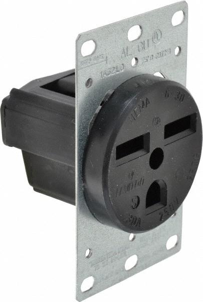 Receptacle, Connection Orientation Straight, Cover Type No Cover, Current Rating 30 A, GFCI No, Grounding Grounded, Housing Color Black, Housing Material Thermoplastic, Mount Type Flush, NEMA Receptacle Configuration 6-30R, Number of Poles 2, Number of Wires 3, Phase Single, Polarized Yes, Receptacle Type Single, Standards ANSI C73, C22.2 No. 14, C22.2 No. 65, File E13399, CSA C22.2 No. 42, NEMA WD-6, UL 486E, UL 498, Voltage Rating 250V AC, Wire Connection Type Screw Terminals