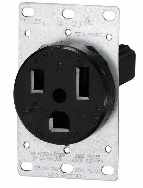 Straight Blade Single Receptacle: NEMA 15-60R, 60 Amps, Self-Grounding
