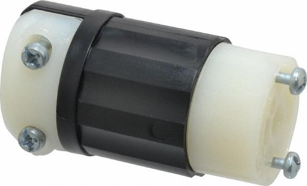 Locking Inlet: Connector, Industrial, ML-2R, 125V, Black & White Self-Grounding, 15A, Nylon, 2 Poles, 3 Wire