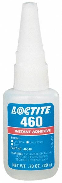 Adhesive Glue: 0.7 oz Bottle, Tan 0.70 oz Bottle Tan Instant Adhesive Series 460, 50 sec Fixture Time, 24 hr Full Cure Time, Bonds to Plastic & Rubber