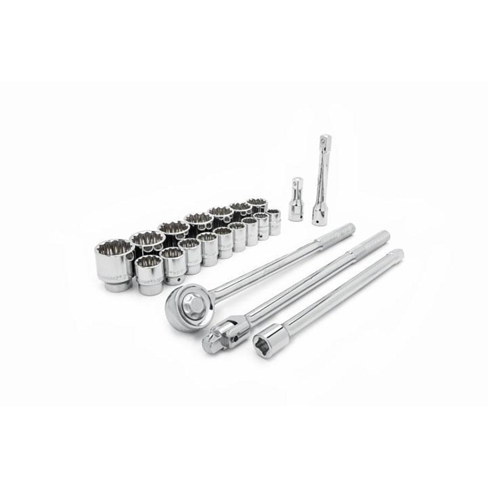 Socket Set: Standard, 21 Pc, 3/4" Drive, 7/8 to 2" 12 Point, Chrome