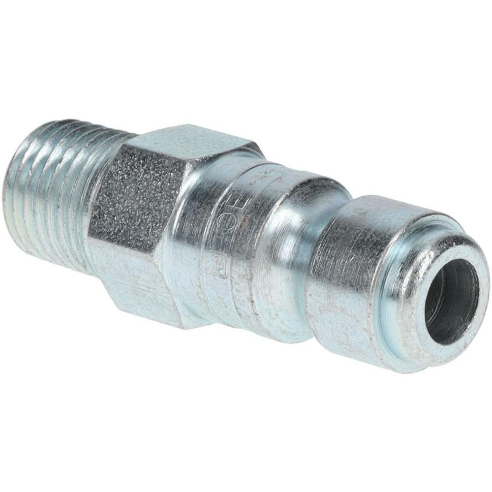 Pneumatic Hose Coupling: 1/4-18" Thread, 3/8" Body Dia, Tru-Flate Automotive Interchange 1/4-18 Male NPT Tru-Flate Automotive Pneumatic Hose Connector Steel, 3/8" Body Diam