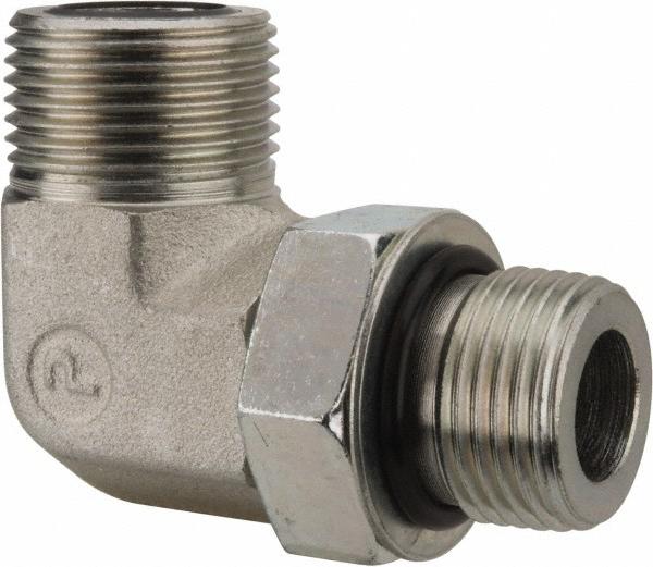 Compression Tube Male Elbow: 1-1/16-12" Thread, O-Ring Face Seal/SAE-ORB Zinc-Plated Steel