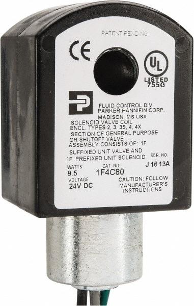 24 Volt, 18 Coil Lead Length, Class F, Solenoid Coil 9.5 Watt, NEMA 4X Enclosure, Use with Parker Skinner Gold Ring Series Valves