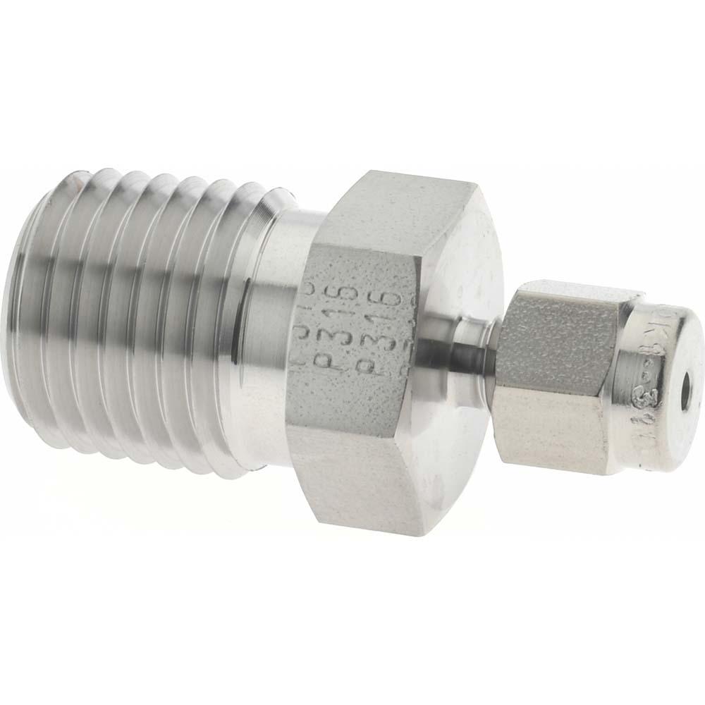 Compression Tube Connector: 1/4-18" Thread, Compression x MNPT Stainless Steel