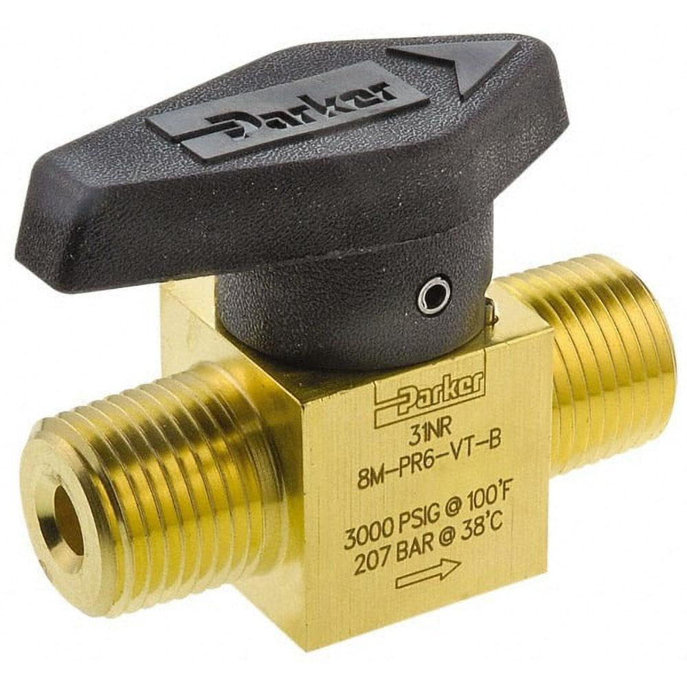 1/8" Pipe, 3,000 psi WOG Rating, Brass, Inline, One Way Instrumentation Plug Valve Wedge Handle, MNPT x MNPT End Connections, Viton Seal