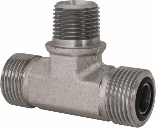 Compression Tube Male Branch Tee: 3/8-18" Thread, O-Ring Face Seal/NPTF