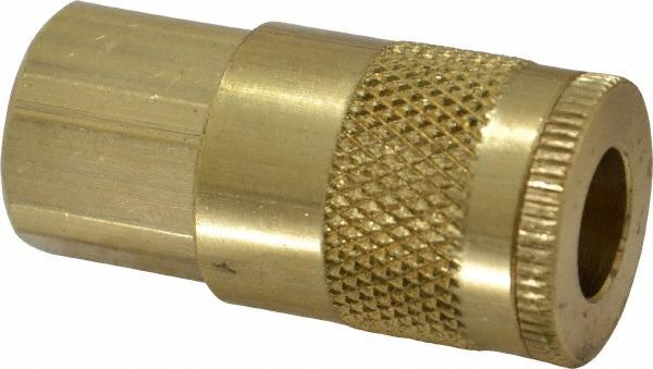 Pneumatic Hose Coupling: 1/4-18" Thread, 1/4" Body Dia, Tru-Flate Automotive Interchange 1/4-18 Female NPTF Tru-Flate Automotive Pneumatic Hose Coupler Brass, 1/4" Body Diam