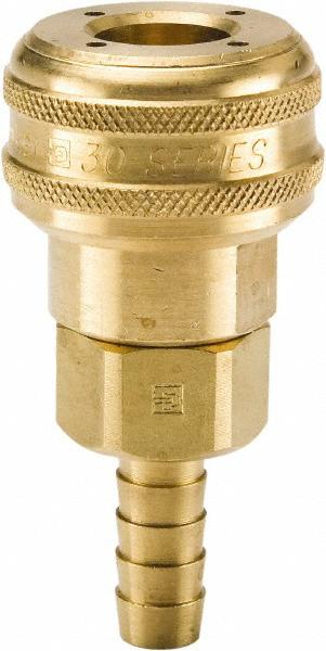 Pneumatic Hose Coupling: 3/8" Body Dia, Industrial Interchange Brass, 1/2" ID