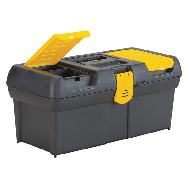 Polypropylene Tool Box: 1 Drawer, 4 Compartment 15-3/4" Wide x 7-1/2" Deep x 7-1/8" High, Polypropylene, Black/Yellow