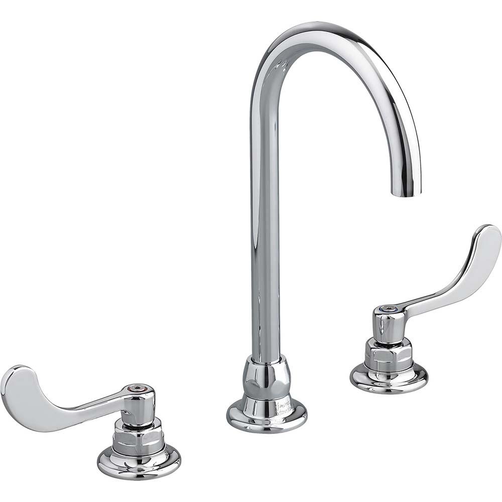 Field convertible - Laminar flow restrictor in spout base - Vandal-resistant wrist blade handles with blue and red color indexes - Features Speed Connect drain - Rigid 8" copper connection - Limited 5-year commercial warranty - 8" rigid copper connections - Low Lead: Faucet contains 0.25% total lead content by weighted average - 5 Year Limited Warranty for Commercial Installations -