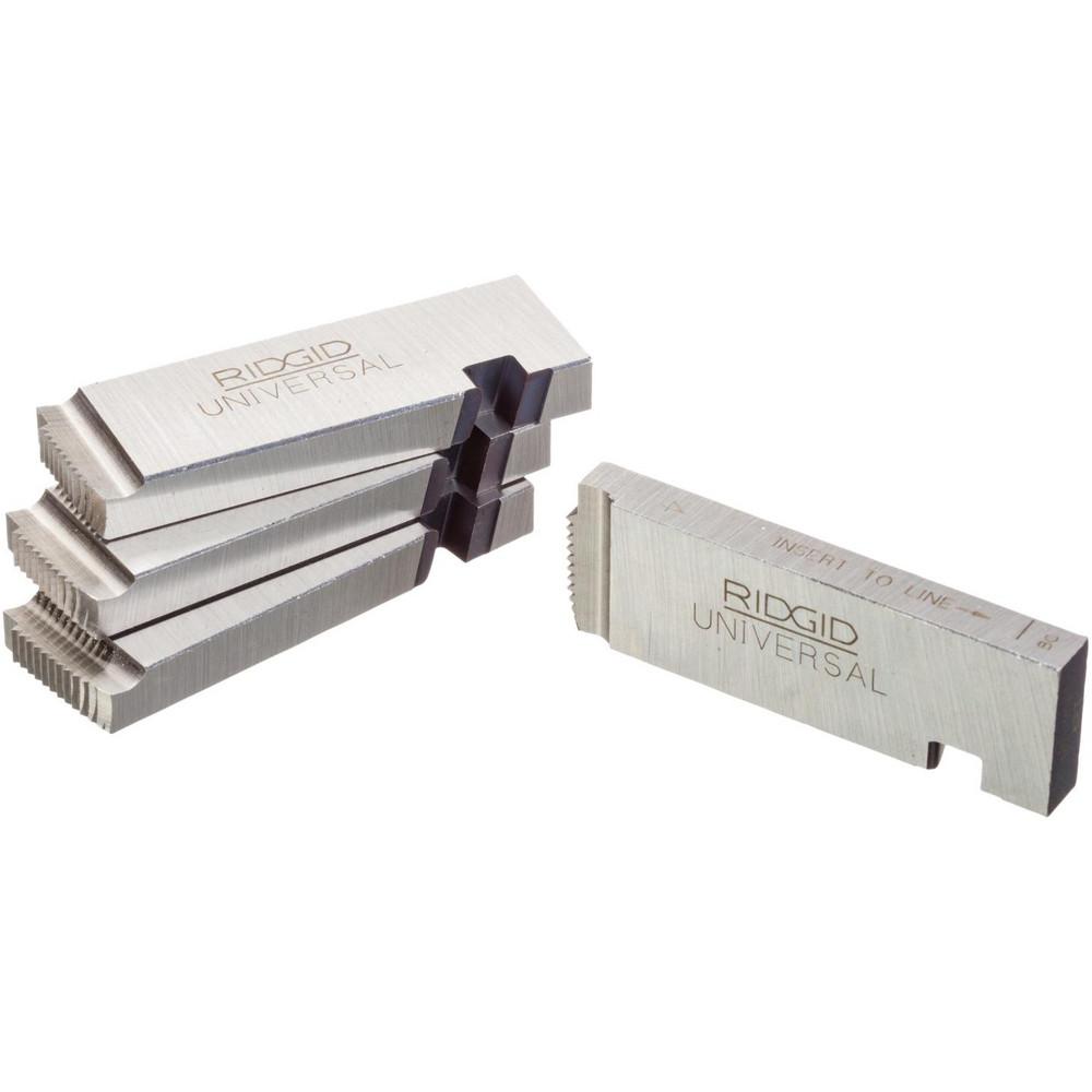 Replacement Pipe Die, Compatible Pipe Size 1/2 in to 3/4 in, Compatible Material Type Aluminum, Steel, Thread Type NPT, Compatible Thread Direction Right Hand, Die Material Alloy Steel, Die Head Compatibility Ridgid Machine Universal, Compatible Threader Series 1215, 1224, 300, 535, Application Pipe, Number of Dies 4, Threads Per Inch 14, Compatible Threader Type Threading Machine, Compatible Die Head Grainger Part Number 4CW40, 4Z974, 5A195